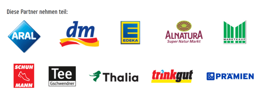 Aral, dm, EDEKA, Alnatura, Marktkauf, Thalia, trinkgut, SchuhMann, TeeGschwendner sowie der PAYBACK Prämienshop.