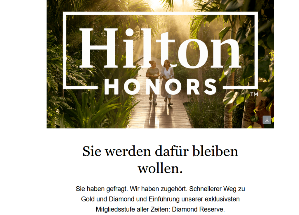 Neu im Programm ist Hilton Honors Diamond Reserve. Diese Stufe richtet sich an Mitglieder, die regelmäßig bei Hilton übernachten und hohe Ausgaben tätigen.
