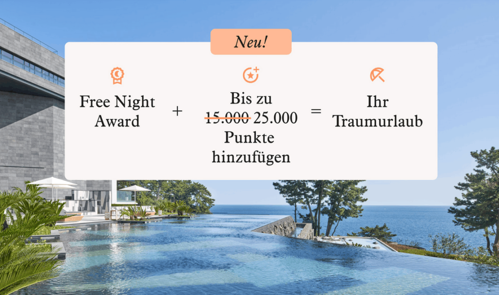 Das macht einen großen Unterschied, denn viele Hotels liegen knapp über dem Wert eines Awards. Mit der zusätzlichen Punkte-Option kannst du diese Lücke jetzt deutlich leichter schließen.