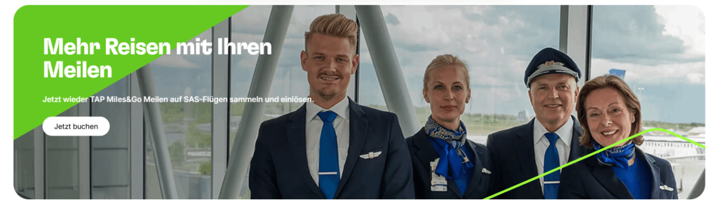 Gesammelte Meilen aus dem TAP Miles and Go Programm können auch für Prämientickets mit SAS eingesetzt werden. Dabei gelten die üblichen Partnerregeln für Prämienbuchungen.