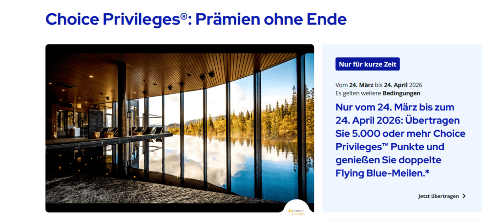 Wer Choice Punkte zu Flying Blue tauschen möchte, profitiert aktuell von der Verdopplung und dem deutlich besseren Gegenwert.
